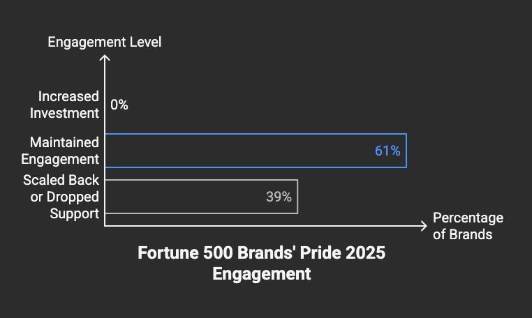 According to Modern Retail, nearly 40% of Fortune 500 and Global 100 companies scaled back Pride campaigns this year—and not one planned to increase them. The reason? Political pressure. A full 61% of executives cited the current U.S. administration as influencing their decision to dial it down.
